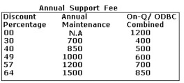 Dealers are entitled to ten-year volume purchase discounts on Business Rules! and ODBC license fees. While all purchases (including version upgrades) are included in the dealer cumulative purchase basis, discounts only apply to primary license fees and user increases: